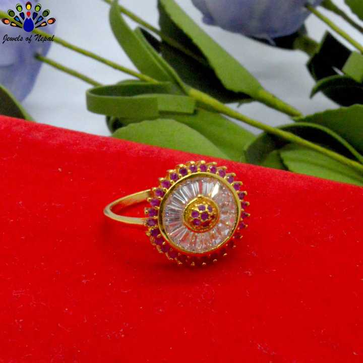 Gold Plated White/Red American Diamond Stone Studded Finger Ring For Women
