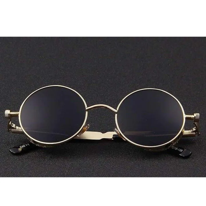 Golden Metal Round Circle Frame Sunglasses For Men