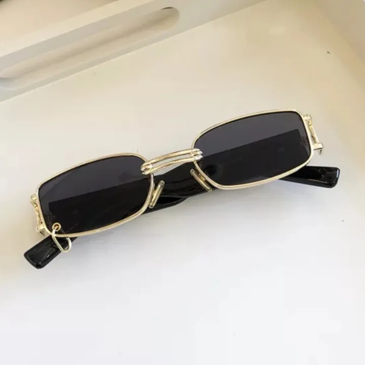 Golden Metal Thin Square Retro Trendy Sunglasses Unisex
