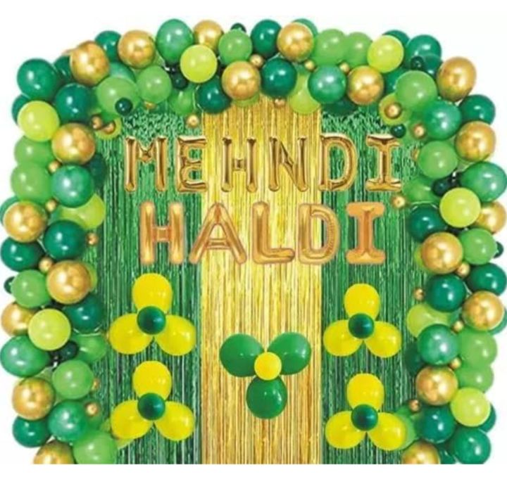 Haldi Mehndi Decoration 1 Mehndi 1 Haldi 2 Curtains 40 Balloon 1 Glue Dot 1 Arch (Set of 46)