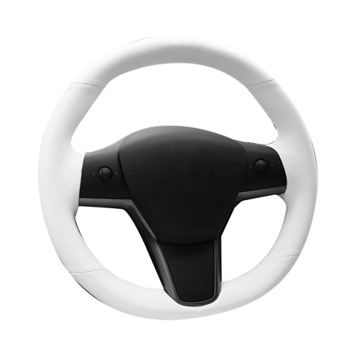 Hand-Stitched Car Steering Wheel Cover White Car Accessories for Model 3 Model X Model Y Model S