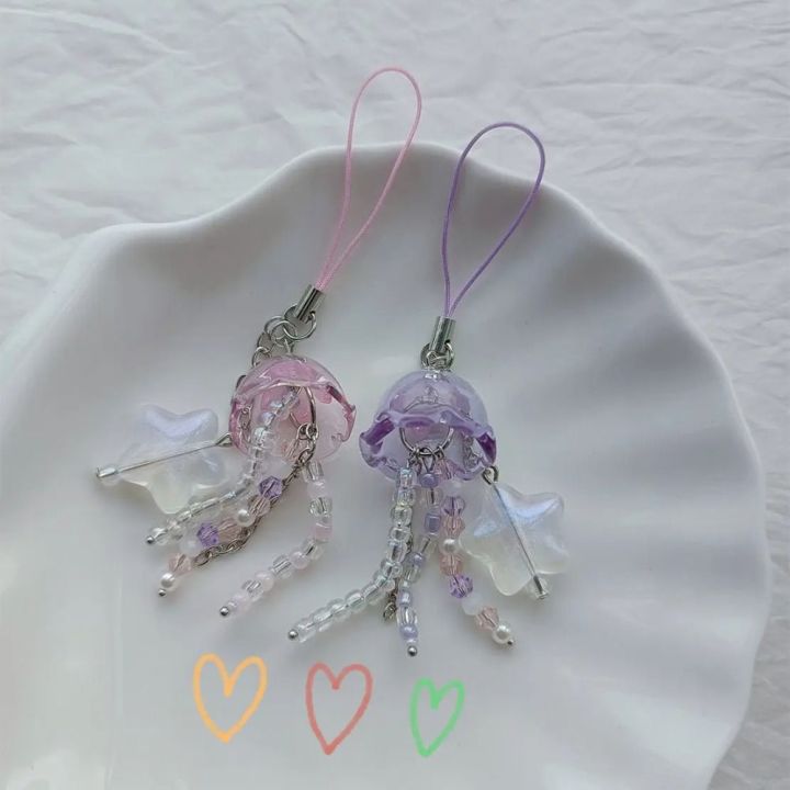 Handmade Purple Pink Beaded Phone Charm with Star Jellyfish with Star Cottage Core Y2K Beaded Cottage Core Key Chain Phone Charm Key Chain