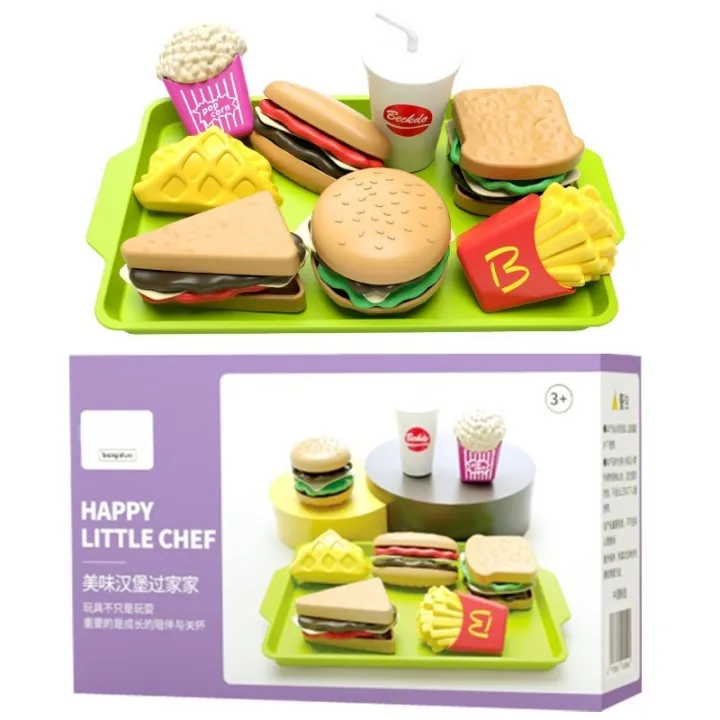 Happy Little Chef Kitchen Toys Play House Mini Burger And Fries Set Food Toys