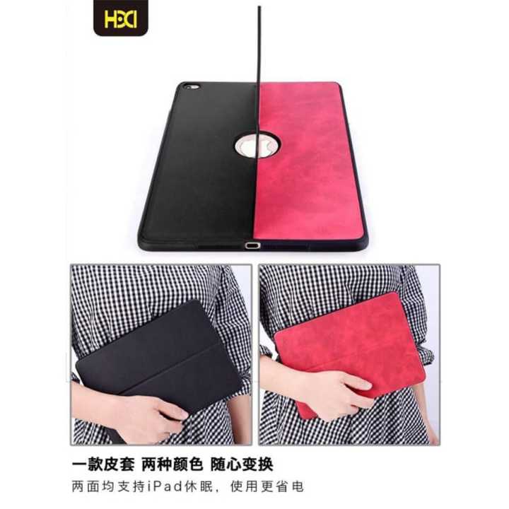 HDD iPad Case with Tri-Fold Stand Automatic Smart Flip Double-Sided Leather 2 Color Slim for iPad Pro 9.7(2018) Black And Red Color