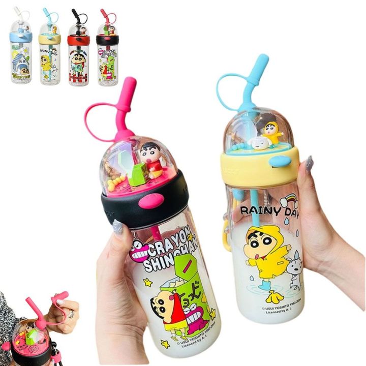 High Appearance 620ml Crayon Shin-chan Water Cup Transparent Cartoon Straw Cup Children's Water Bottle Gifts