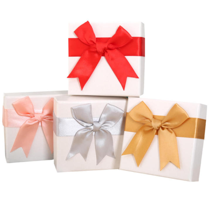 High-grade Necklace gift box Stylish Handcrafted Small-sized Ring packaging box Velvet-lined Bow Jewelry display case for Wedding Anniversary Birthday Gift giving Jewelry storage