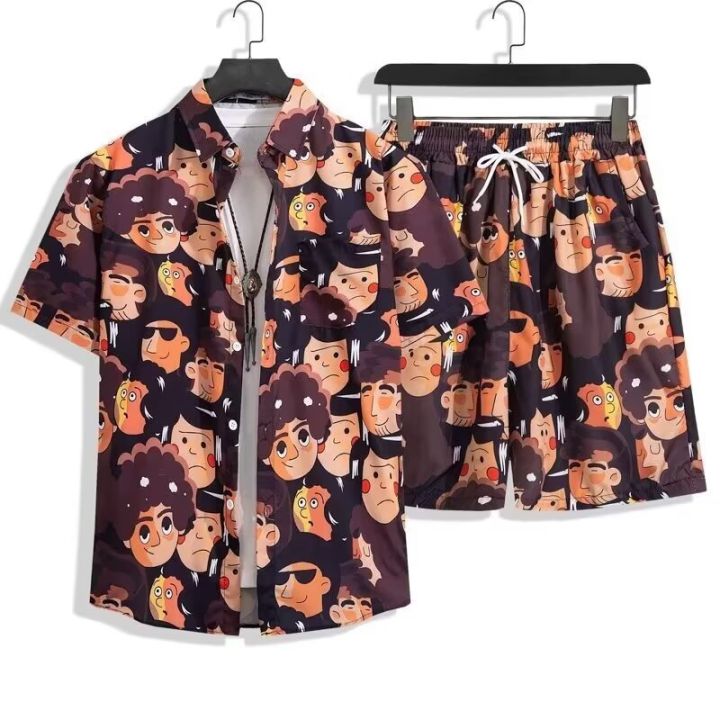 High Quality Flower Shirt Men's Short Sleeve Beach Shirt Sanya Xiawei Style Thailand Travel Vacation Couple Leisure Set