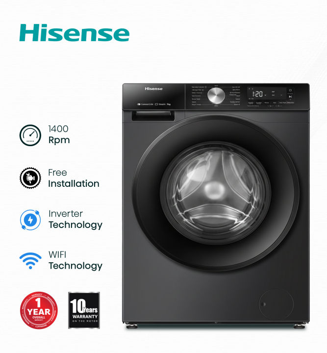 Hisense Front Load Washing Machine 9Kg Titanium & Wifi (WF3S9043BT)