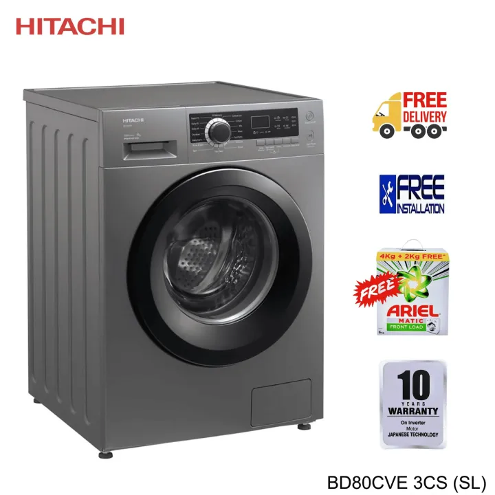 HITACHI 8Kg Fully Automatic Inverter Front Load Washing Machine BD80CVE (SL)