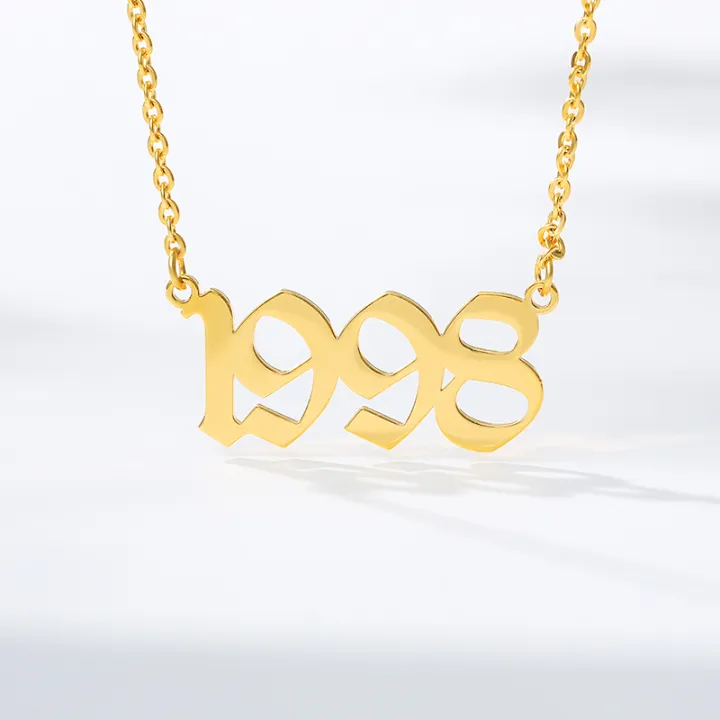 【Hongtai Store】Old English Font Year Necklaces For Wo Rose Gold Silver Color Steel Chain Male Pendant Necklace Jewelry