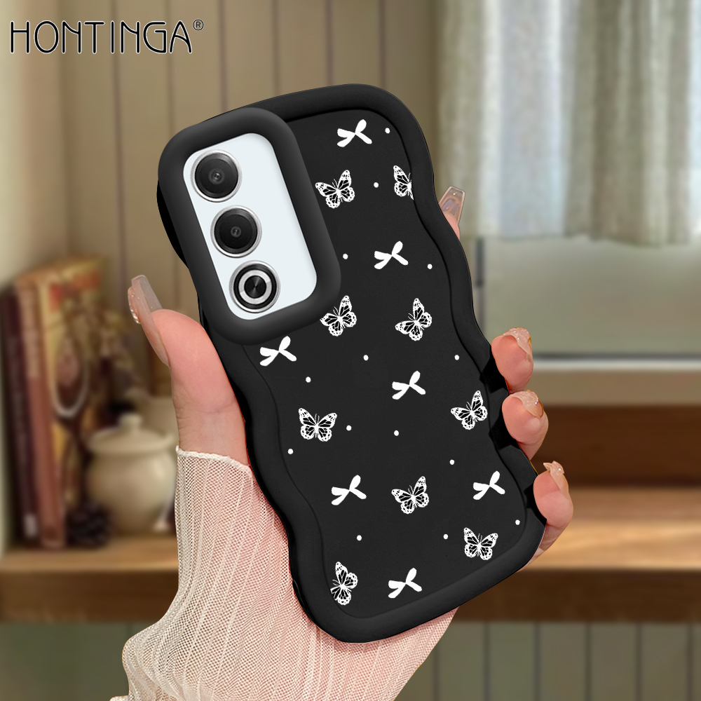Hontinga for OPPO A3 Pro A3 A3X 4G 5G Back Cover Small Black Butterfly Pattern Luxury Phone Cover Soft Silicone Macaron Wave Mobile Case