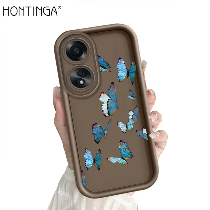 Hontinga for OPPO A58 4G Back Cover Blue Butterflies Pattern Ladder Soft Camera Protection Rubber Phone Case