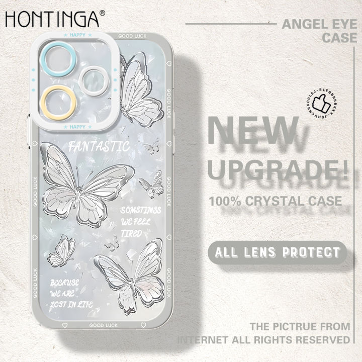Hontinga for Redmi 13 Xiaomi Poco M6 4G Back Cover Crystal Butterflies Camera Protection Transparent TPU Soft Phone Case