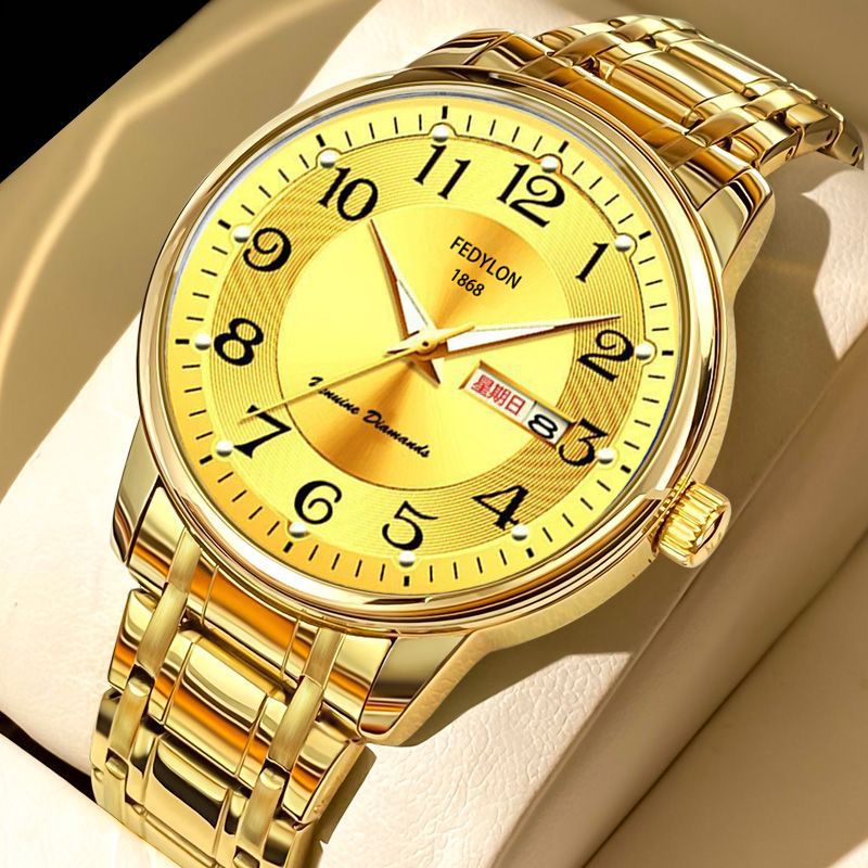 【Hot New Release】Fotilon Men's New Automatic Mechanical Watch with Steel Strap, Night-Luminous Waterproof Large Digital Quartz Wristwatch for Elderly