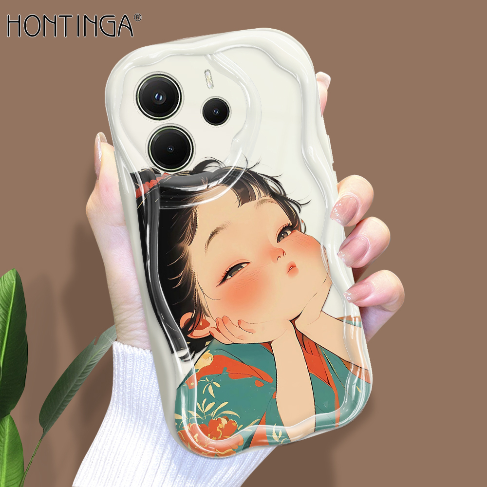 Hotinga for Redmi Note 14 Note 14 Pro Note 14 Pro Plus 5G Xiaomi Poco X7 5G Back Back Cover Cute Lovely Girl Cream Texture Wavy Edge Soft Phone Case