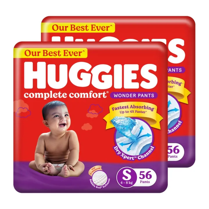 Huggies Wonder Pants (S) 112 pcs Size (4-8 Kgs) Baby Diaper Pants| Complete Comfort India's Fastest Absorbing Diaper with upto 4x faster absorption