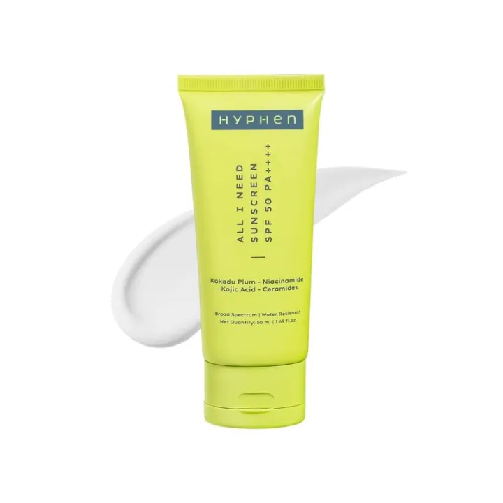 Hyphen All I Need Sunscreen SPF 50 PA ++++ | Lightweight Sun Cream & Leaves No White Cast | UVA & UVB Sun Care Blue Light Protection | Niacinamide, Ceramide Mineral Sunscreen for Women and Men for Dry, Oily, All Skin Types | 50ml