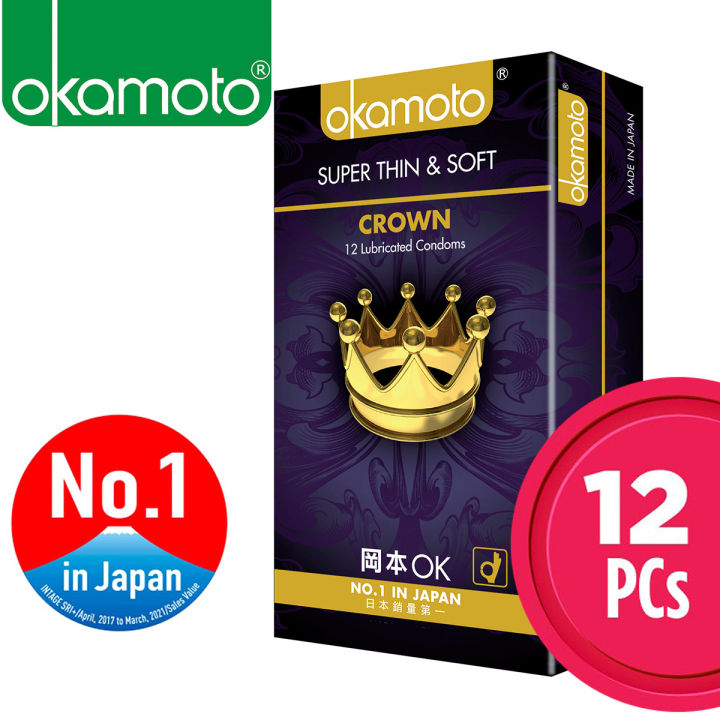 Okamoto Crown Silky Soft SHEERLON Latex Condoms 12-Pcs - Thin, Strong & Odourless