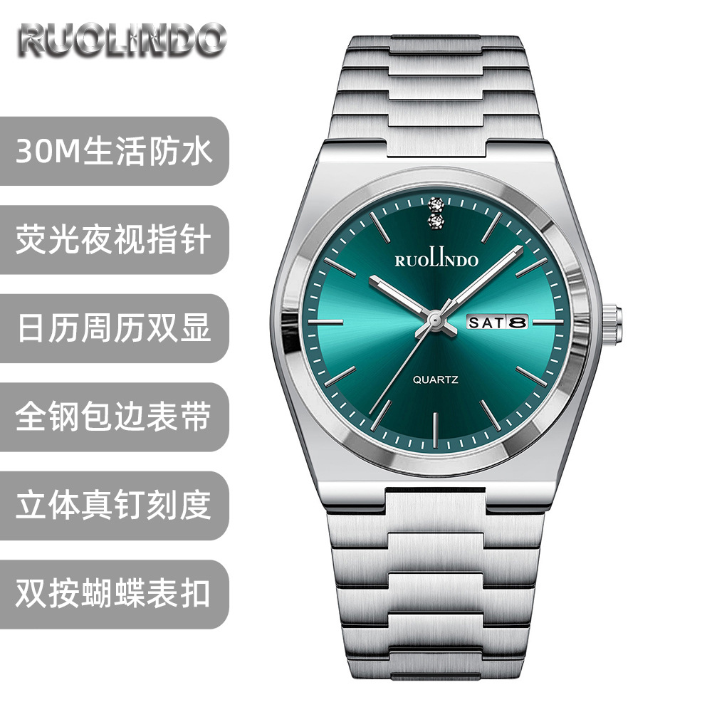 新款双日历男款手表男高级感不锈钢夜光跨境男士手表