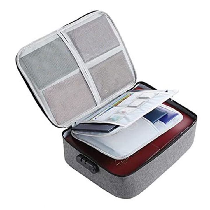 Important File Pocket Holder,Document Organizer Box,Oxford Waterproof Document Storage Bag with Safe Code Lock (Gray)