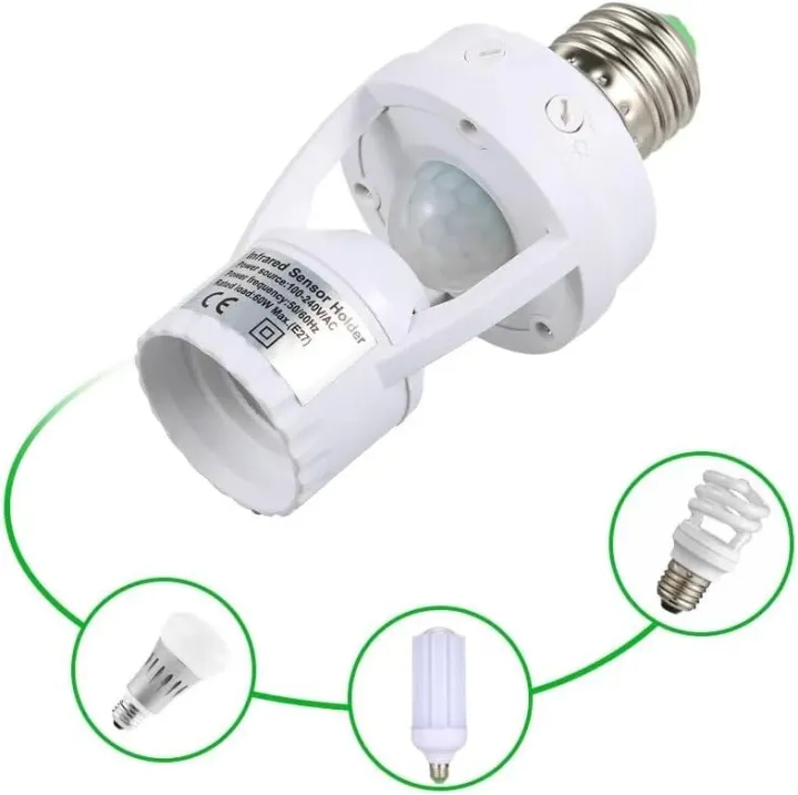 Infrared Sensor Lamp Holder E27 To E27 Screw Lamp Holder With Plug Light Socket Adaptor Motion Sensor Plug PC Lamp Head For E27 Bulb