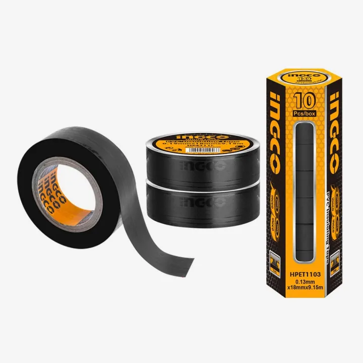 Ingco Brand 10 PCS PVC Insulating Tape Black: 9.15MTRs(18MM) Pvc Tape