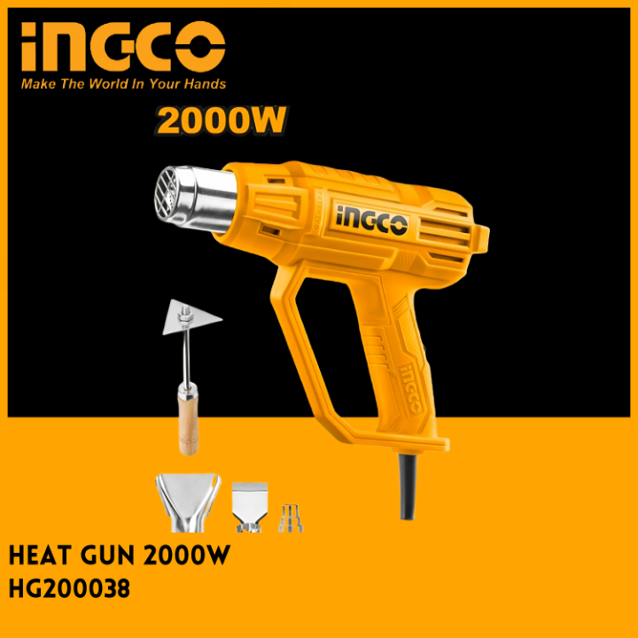Ingco New Heavy 2000W Heat Gun HG200038 With 1pcs Scraper And 3pcs Nozzles