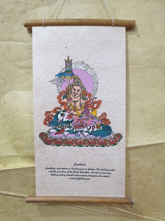 Jambhala Buddha Wall Hanging Lokta Paper painting wall Art / Painting / Wallpaper, Handmade, home Decor