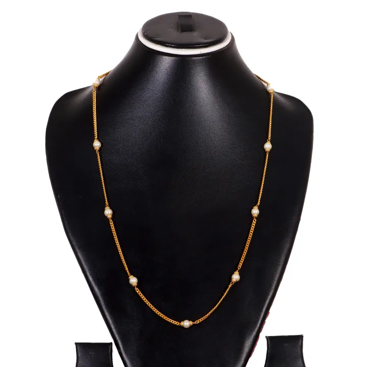 Jewel%20Queen%20Gold%20Plated%20Simple%20And%20Latest%20Design%20Chain%20With%20Moti%20Ball%20Chain%20Necklace%20For%20Women%20-%20Image%201