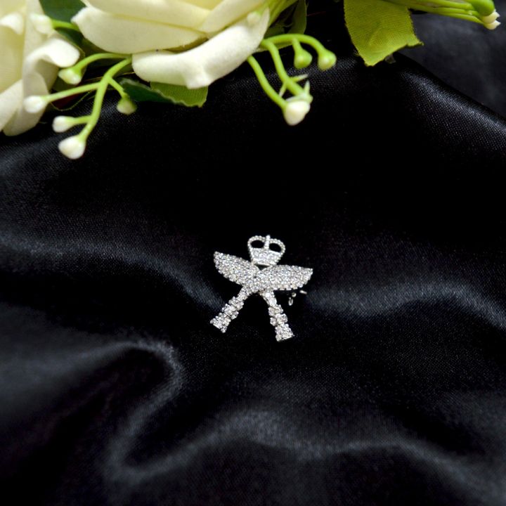 Jewels of Nepal American Diamond Studded Double Khukuri Crown Designed Brooch for Men