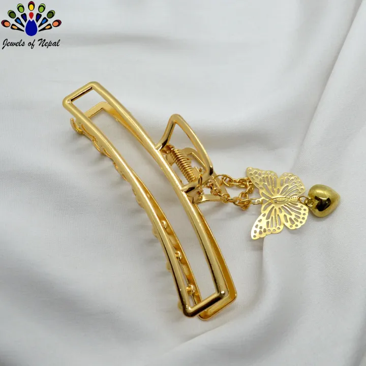 Jewels of Nepal Viral Butterfly Charm Long Metal Hair Claw Clip For Women