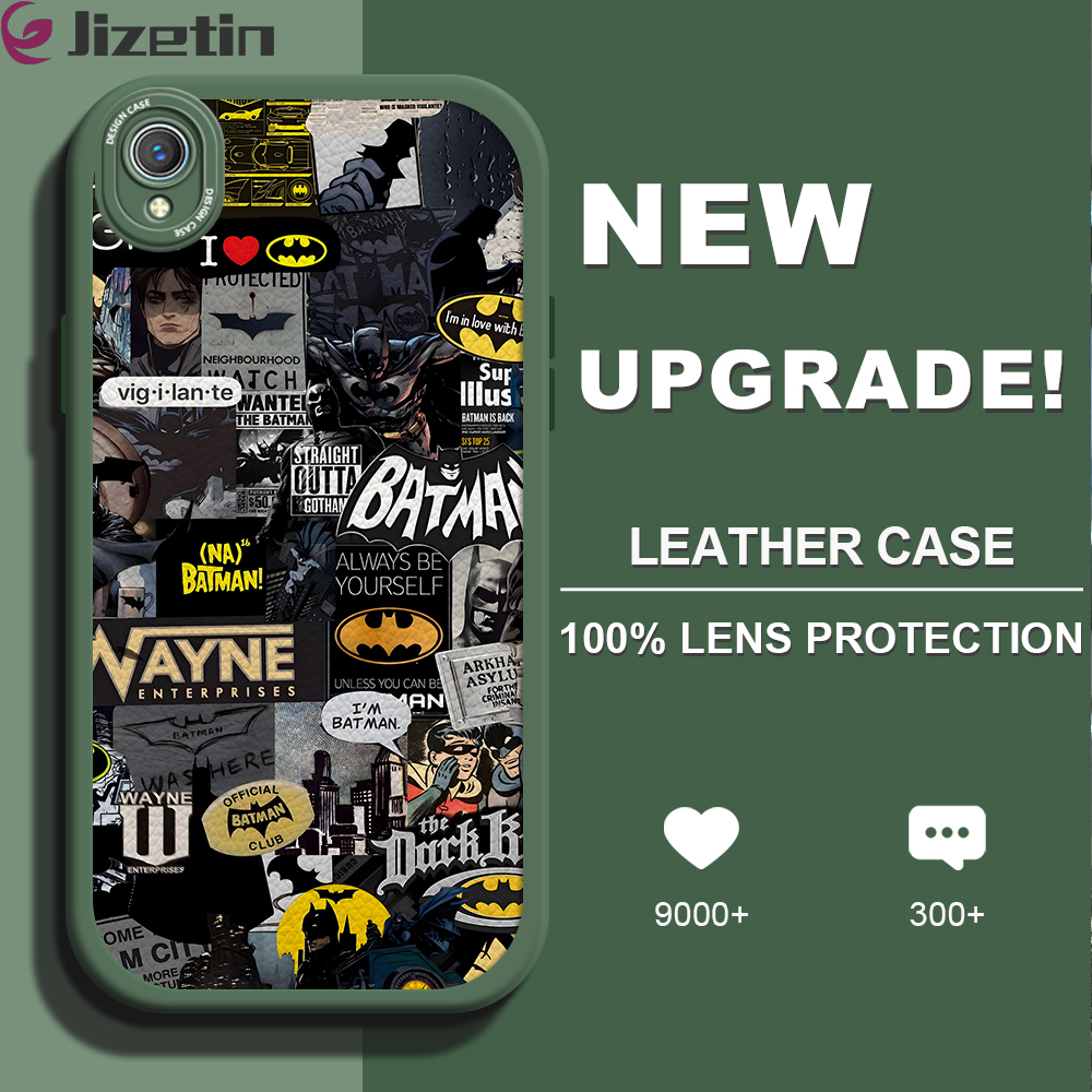 Jizetin for Vivo Y1S Y91C Y90 Back Cover Batman Lambskin Texture PU Leather Back For Girls Boys Soft Phone Case