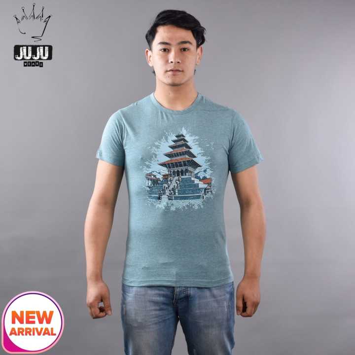 JUJU Wears Aqua Melange Colour Nyatapola Printed Cotton Tshirt For Unisex