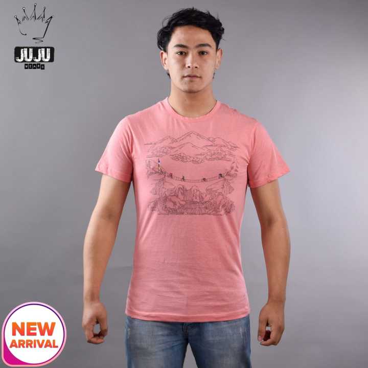 JUJU Wears Pink Colour Mountain Bike Printed Cotton Tshirt For Unisex