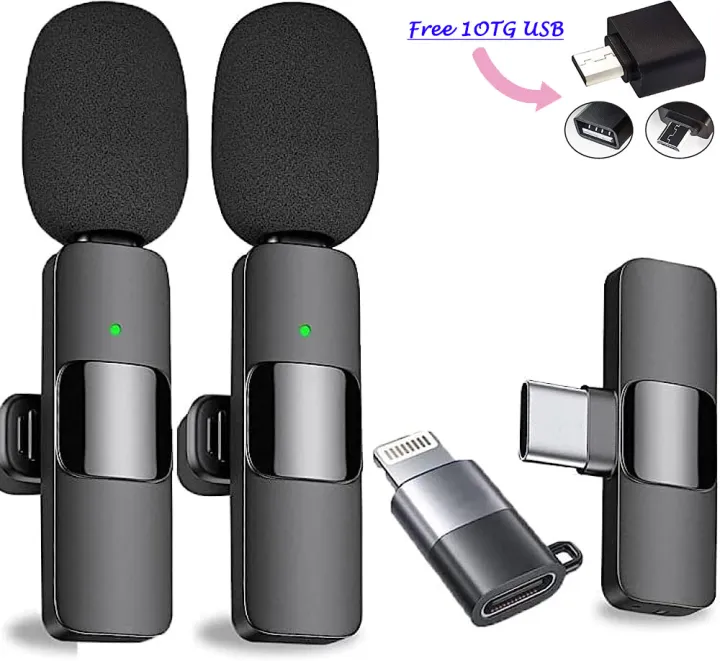 K9 Dual Wireless Collar Clip Professional Microphone For Live, Video, Sound Recorded Type-C & iphone