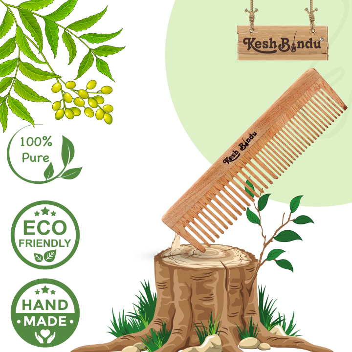 KeshBindu%20Neem%20Wooden%20Comb%20For%20Men%20&%20Women%20Suited%20For%20All%20Hair%20Types%20(Dual%20Tooth%20Comb)%20-%20Image%201