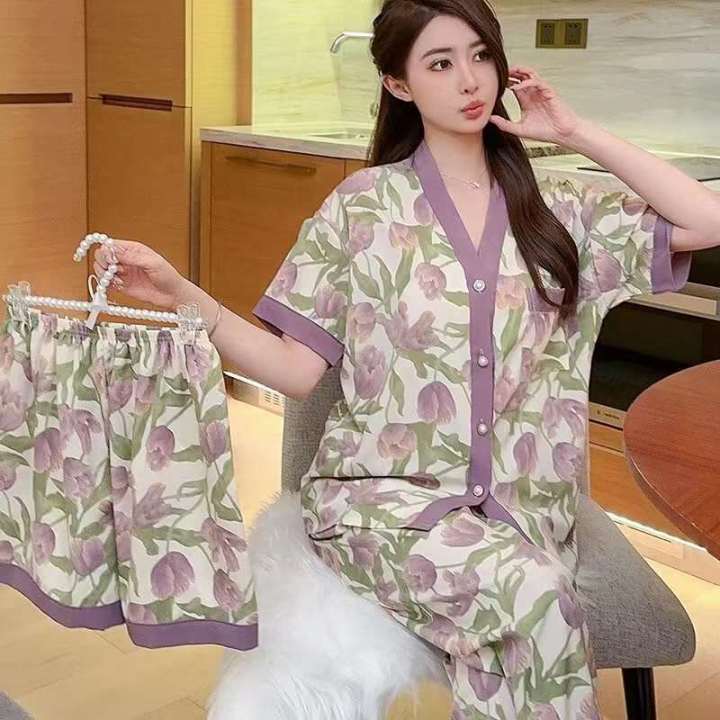 Korean%20Style%203in1%20Casual%20Cotton%20Pajama%20Short%20Sleeve%20Cute%20Cartoon%20Printed%20Sleepwear%20Nightwear%20-%20Image%201