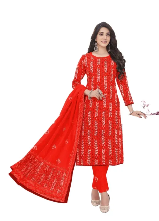 Kurta Suruwal With Shawl Set For Women Printed (Unstitched)