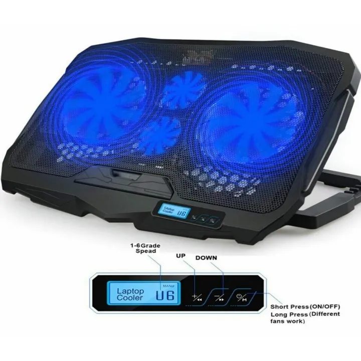 Laptop Cooling Pad 4 Fans Adjustable 10 Inch to 17 Inch Notebook Cooler, Blue Light, S18 For Any Laptop Speed Control Button