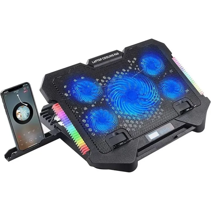 Laptop Cooling Pad / S500 Gaming Laptop Cooling Pad / Blue Led Fans / RGB Side Lights / 2 x USB /With Mobile Holder