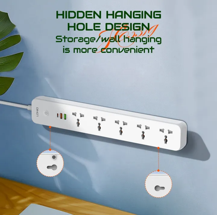 LDNIO SC5319 Multi Socket Extension Lead with 5 AC 3 USB Power Socket Plug Extender 2M