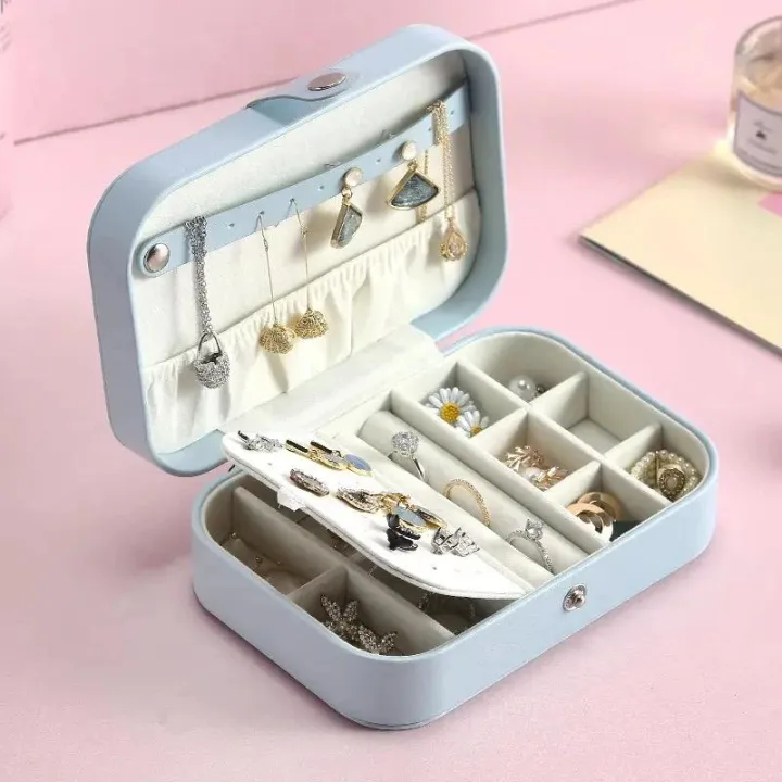Leather Jewellery Box Necklace Earrings Bracelet Display Snap On Travel Simple Storage Organizer Case Gift with Buckle Lock