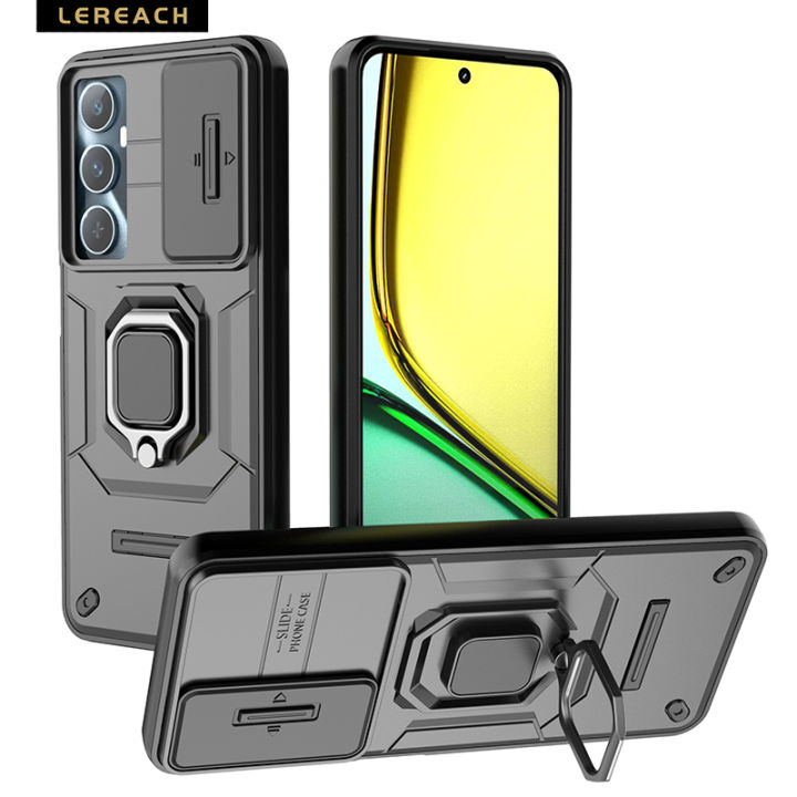Lereach For Realme C65 4G Mobile Phone Case TPU+PC Hard Ring Car Ring Bracket Shockproof Back Cover Camera Protection