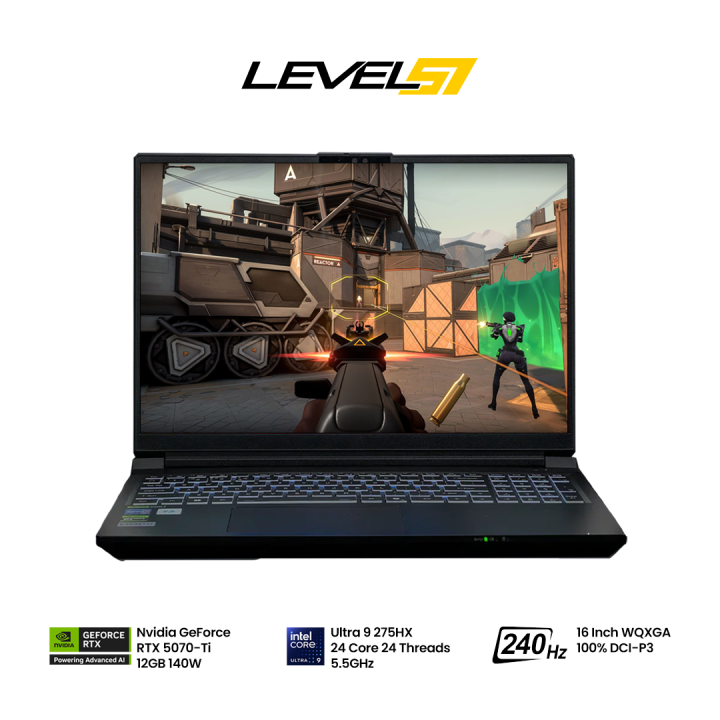 Level 51 Xavia 16 | Intel Core Ultra 9 275HX | 16GB RAM | 500GB SSD | NVIDIA RTX 5070-Ti 12GB | 16 inch WQXGA Screen | 240Hz Refresh Rate | 105.6% sRGB | 2 Years Int'l Warranty