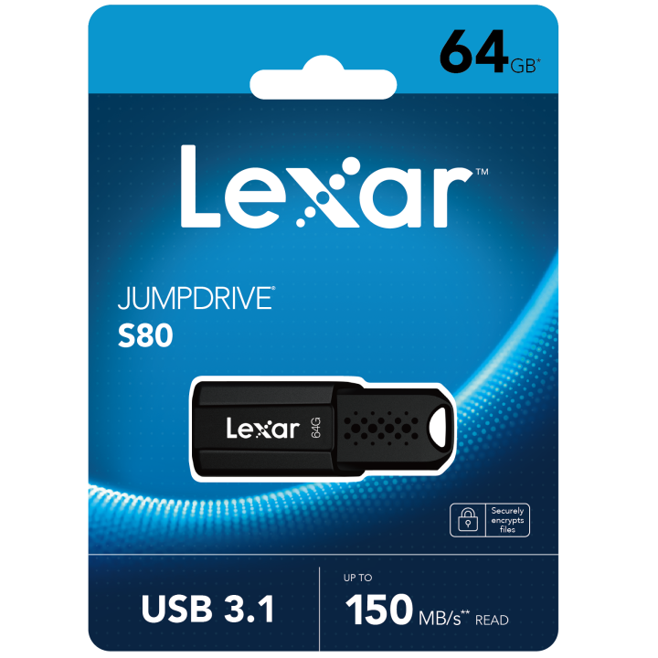 Lexar JumpDrive S80 64GB USB 3.1 Flash Drive, Up to 150MB/s