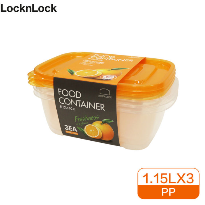 LocknLock New EZ-Lock 1.15L X 3pcs With Orange Cap(3 pcs)