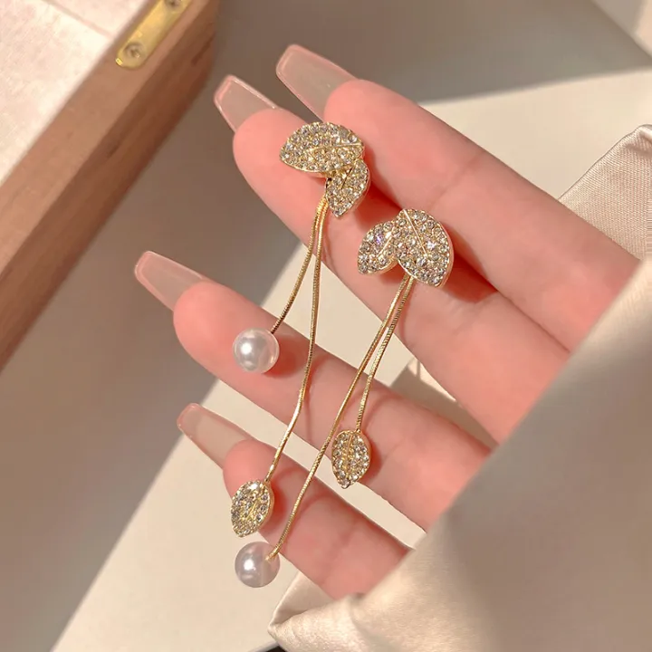 Long%20Full%20Diamond%20Leaf%20Earrings%20for%20Women%20One%20Style%20for%20Dual-Wear%20Tassle%20Fashion%20Diamond-Embedded%20Graceful%20Earrings%20High-Grade%20Earrings%20-%20Image%201