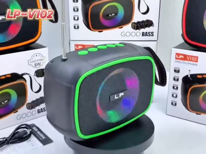 LP V102 Portable Wireless Bluetooth / FM Speaker – Good Bass, RGB Light, USB/TF/AUX