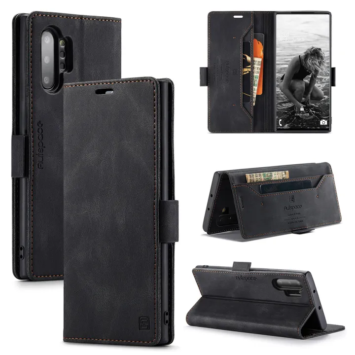 lthmy for Samsung Galaxy Note 10 Plus / Note 10+ Vintage Leather Flip Cover Stand Magnetic Closure Shockproof Protective Case