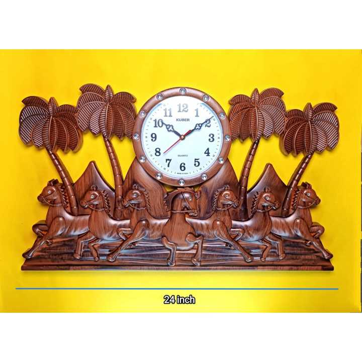 Lucky 7 Horse Wall Clock for Home Decor, Living Room, Hall and Office ( Brown )